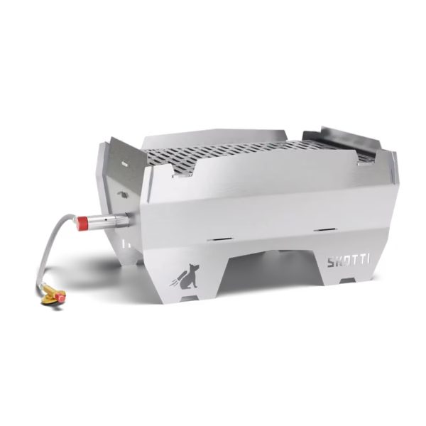 La SKOTTI Grill es una barbacoa portátil modular diseñada para cocinar al aire libre con total libertad, combinando ligereza, resistencia y versatilidad en un formato compacto y fácilmente transportable. Se trata del primer grill de gas del mundo con piezas encajables, lo que permite montar y desmontar la barbacoa sin herramientas en menos de un minuto.